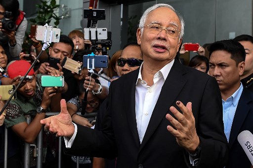 Najib arrived at the anti-graft agency on May 24 to be questioned for a second time this week over a multi-billion-dollar corruption scandal following his shock election loss. / AFP PHOTO / Mohd RASFAN
