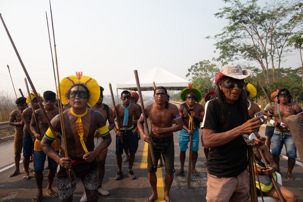 Members of the Kayapo Mekranoti ethnic group have been blocking highway BR-163 through the Amazon since Monday outside the northern town of Novo Progresso.