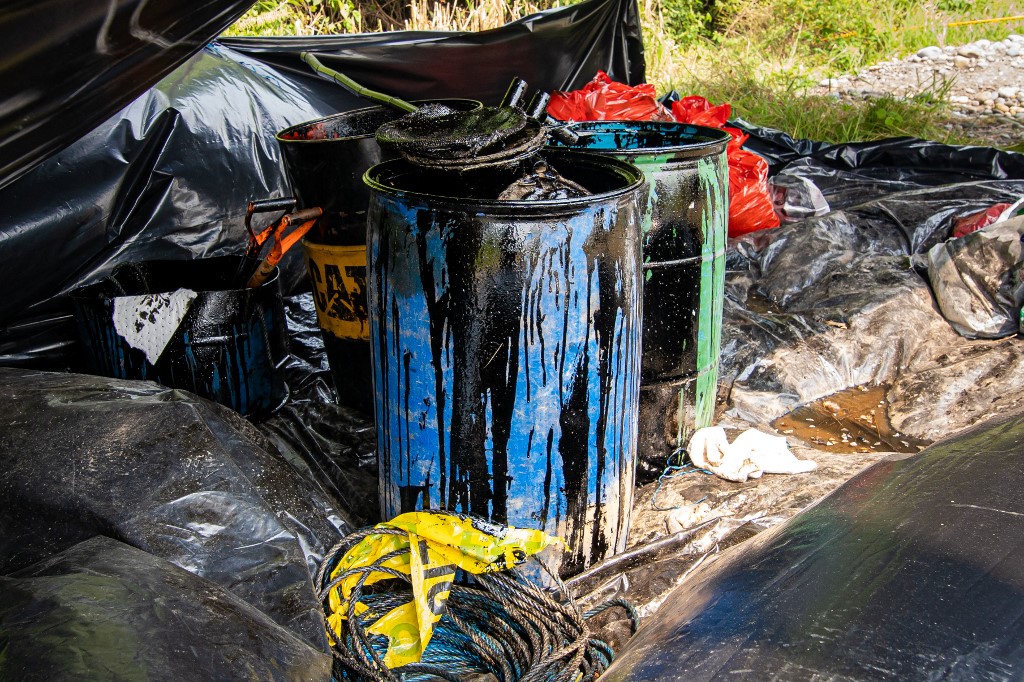 The oil was collected in large basins deployed as an emergency measure when there is a leak.
