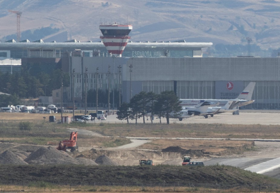 A Russian government plane is seen on the tarmac after landing at Esenboga Airport in Ankara, Turkey August 1, 2024. REUTERS/Tunahan Turhan