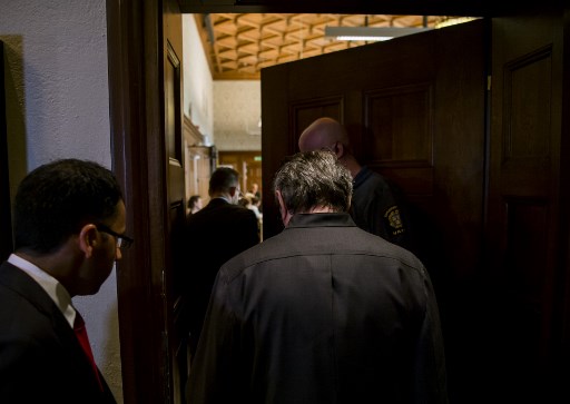 (File photo) Frenchman Jean-Claude Arnault (C) enters the court room at the district court in Stockholm on September 24, 2018, during the final hearing in his trial for rape and sexual assault, allegations that prompted the Swedish Academy to postpone the Nobel Literature Prize. (Photo by Jonathan NACKSTRAND / AFP)