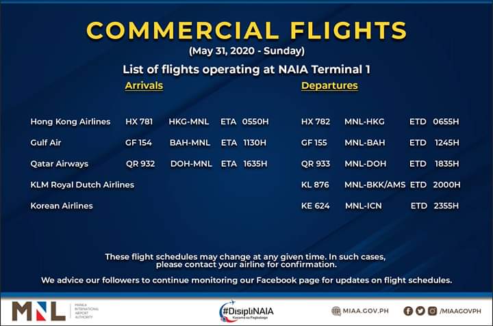 (Eagle News)--The Manila International Airport Authority has released its list of operational commercial flights. MIAA said the list was for…