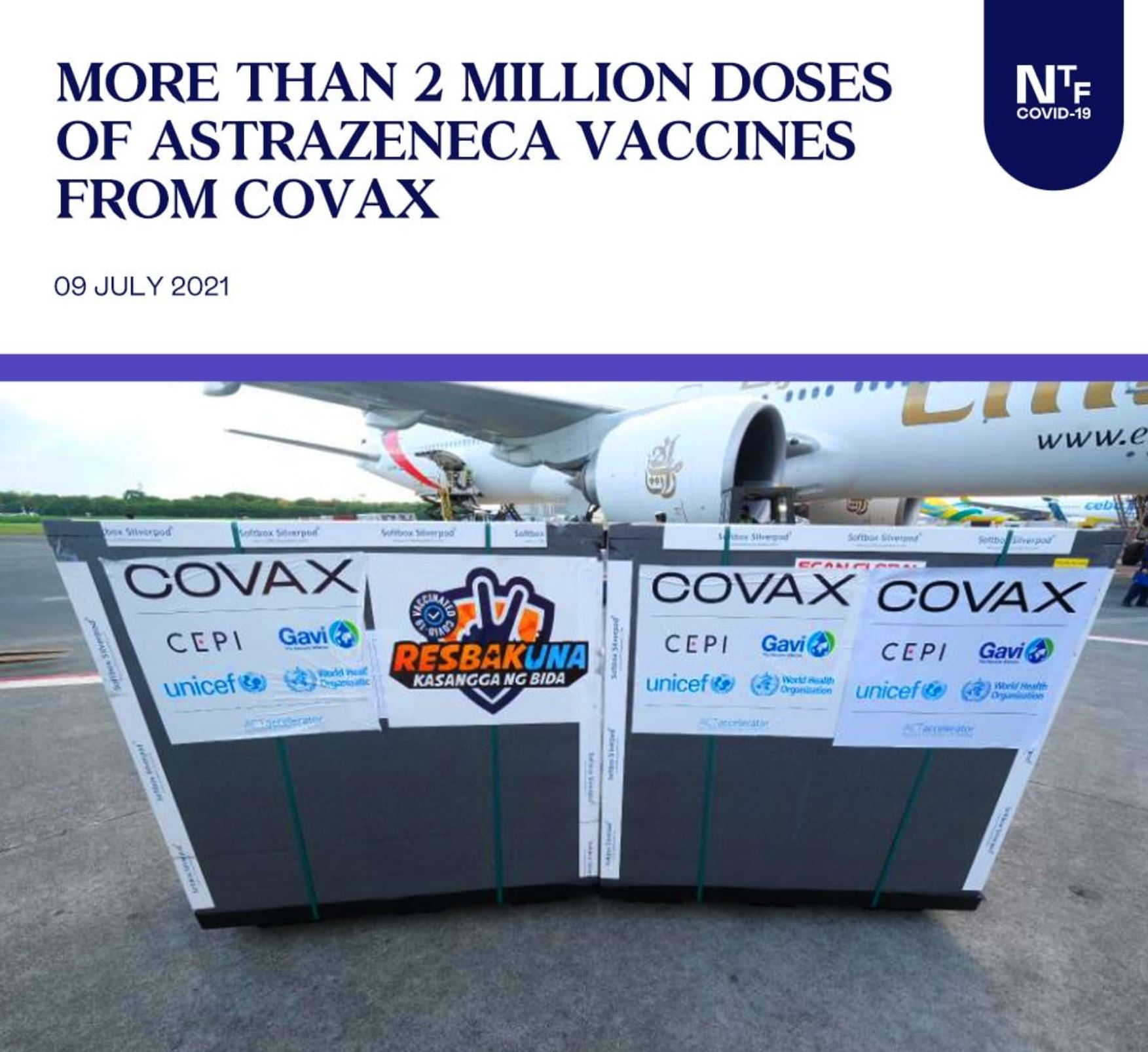 Of this number, 5,708,100 are AstraZeneca doses. This consists of the 1,124,100 doses donated by Japan and 4,585,000 doses that came from the COVAX Facility of the World Health Organization (WHO).