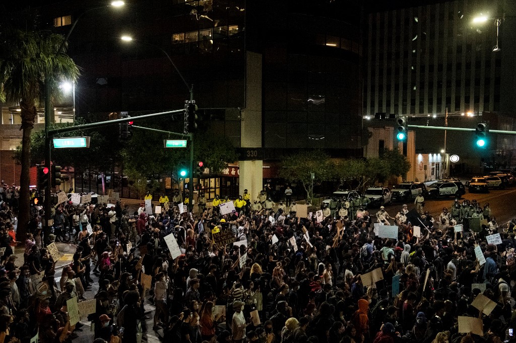 The demonstrations have been largely peaceful but many have broken down into violence and looting after nightfall.
