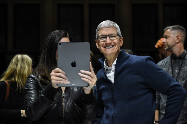 NEW YORK, United States (AFP) — Shares of Apple nudged higher on Tuesday after Chief Executive Tim Cook touted the company’s technology pipeline and characterized worries about the company’s future as overwrought.