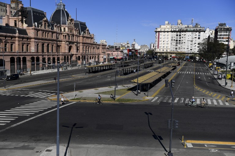 With no public transport or taxis running, Tuesday’s strike was largely respected, as many shops remained closed and citizens found themselves unable to get to work. The strike was called to reject an austerity budget that Argentine President Mauricio Macri says is needed to secure IMF funds. / AFP PHOTO