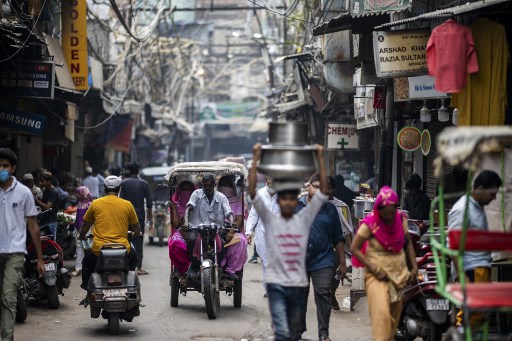(File photo) An electric-rickshaw transports passengers along a street in the old quarters of New Delhi on September 15, 2020. – Coronavirus-ravaged economies across the Asia Pacific will make a “swoosh-shaped” recovery next year, the Asian Development Bank forecast on September 15, but it warned that further restrictions to combat the contagion could derail the region’s return to growth. (Photo by Jewel SAMAD / AFP)