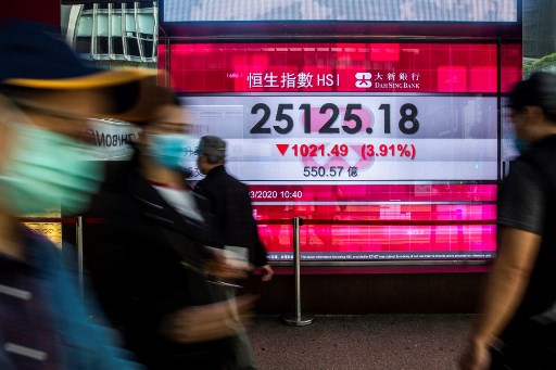 HONG KONG, China (AFP) — Equity markets collapsed Monday as the rapidly spreading coronavirus fans fears over the global economy, while a crash in oil prices added to the panic with energy firms taking a hammering and wiping hundreds of billions off valuations.