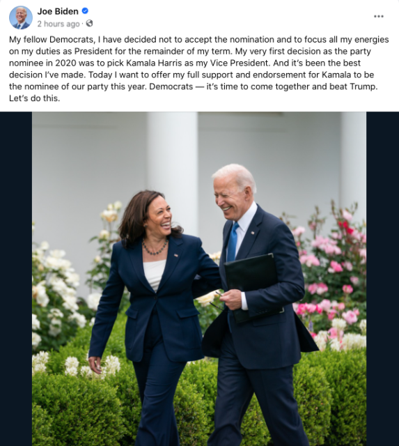 Biden on Sunday gave in to weeks of calls for him to step aside in the wake of a poor debate performance that raised more questions about his health, and endorsed Vice President Kamala Harris to succeed him.