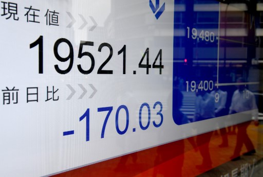 Tokyo stocks fell morning on September 4, 2017 with investors jolted by North Korea’s detonation of what it claimed was a miniaturized hydrogen bomb, ramping up regional tensions and prompting warnings of a US military response. / AFP PHOTO