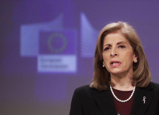 European Commissioner in charge of Health Stella Kyriakides speaks during a press conference on AstraZeneca Covid-19 vaccine as EU is urging the pharmaceutical company to publish its vaccine contract amid an escalating row over delivery shortfalls, at the European Union headquarters in Brussels on January 27, 2021. (Photo by OLIVIER HOSLET / POOL / AFP)
