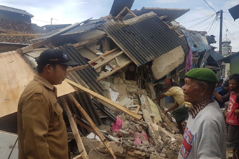 A strong earthquake rattled Indonesia January 23, sparking panic, damaging scores of homes and leaving at least half a dozen students seriously injured. / AFP PHOTO / BOGOR LOCAL GOVERNMENT / HANDOUT