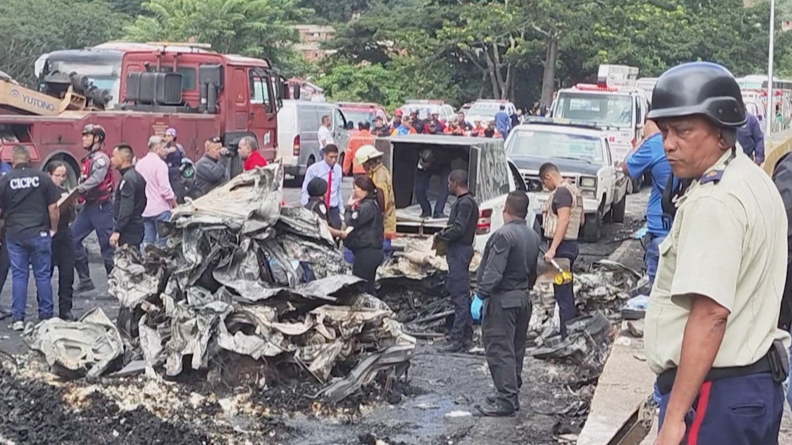 “We have control of all the vehicles that were on fire,” including a bus that was completely burnt, Perez Ampueda said.