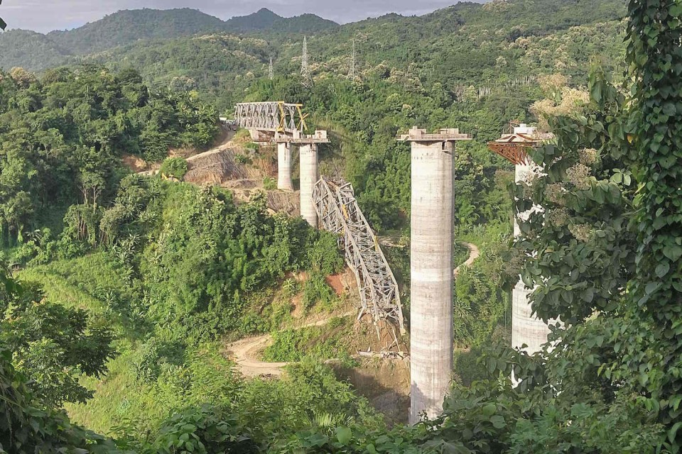 Video footage posted by Mizoram chief minister Zoramthanga showed a metal frame that had toppled off towering columns into a wooded valley below.