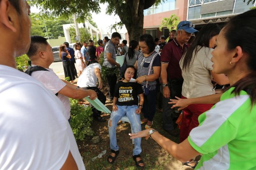 Terrified locals ran into the streets after the shallow quake, which hit the island of Mindanao as schools and offices opened for the day.