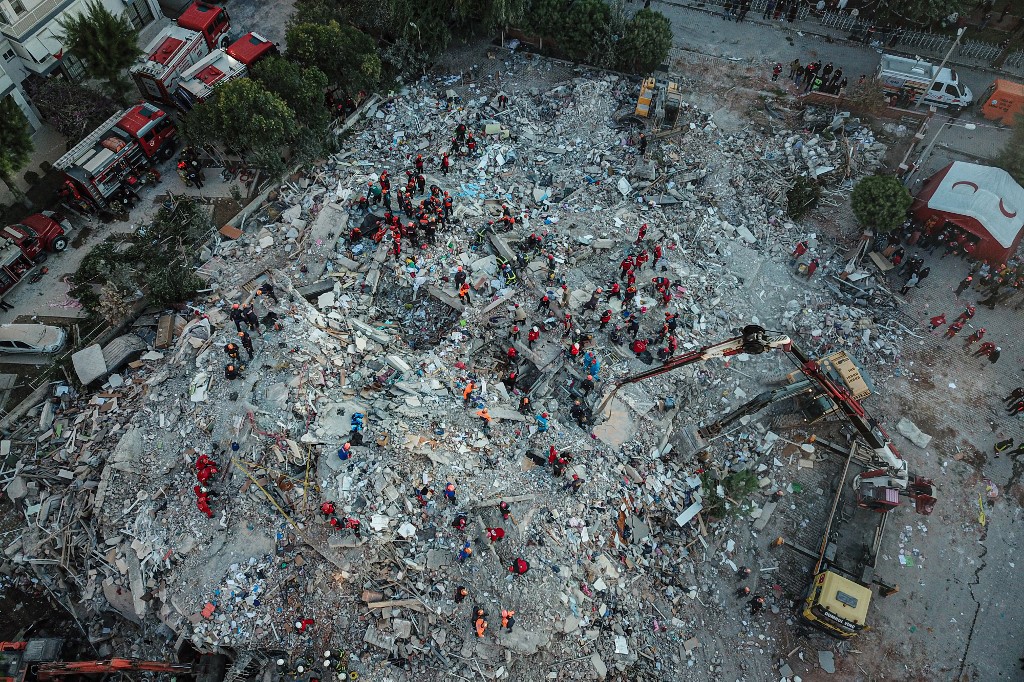 Much of the damage occurred in and around Turkey’s Aegean resort city of Izmir, which has three million residents and is filled with high-rise apartment blocks.