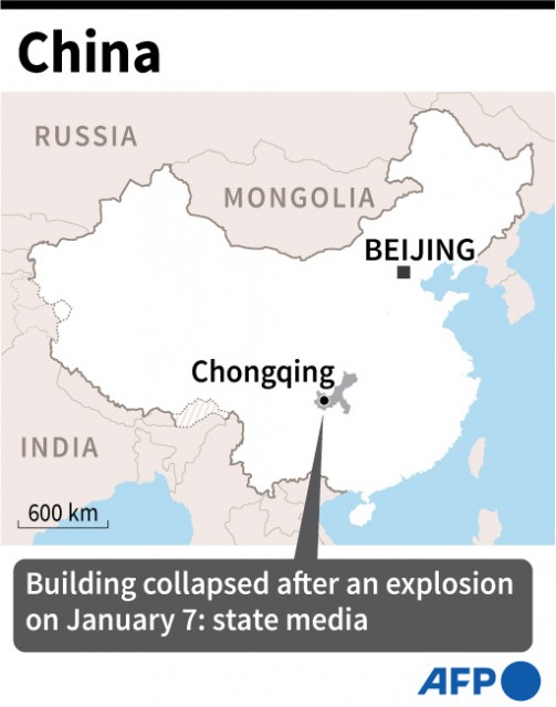 BEIJING, China (AFP) — At least three people died when an explosion caused a building to collapse Friday in the Chinese city of Chongqing, state media reported.