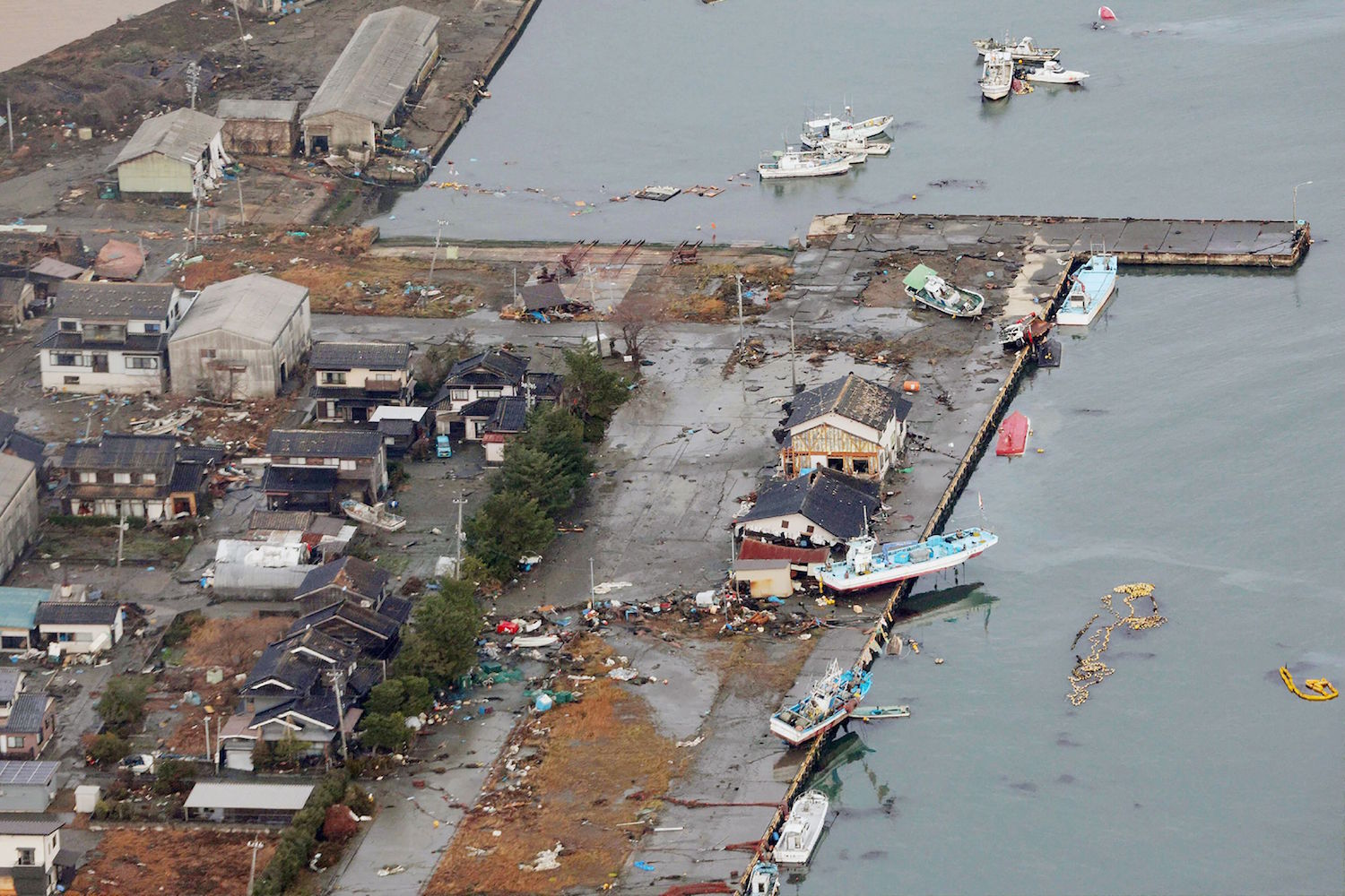 On the Noto Peninsula, the destruction included buildings damaged by fire, houses flattened, fishing boats sunk or washed ashore, and highways hit by landslides.