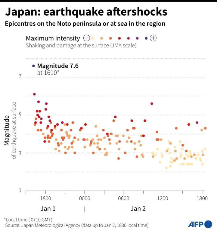 Monday’s quake shook apartments in the capital Tokyo about 300 kilometres (186 miles) away, where a public New Year’s Day greeting event by Emperor Naruhito was cancelled.