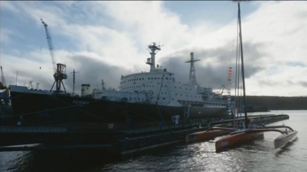 The crew, Jochen Krauth and Quentin Monegier of France, Boris Herrmann and Tim Bastian Frank of Germany, and Sergei Nizovtsev from Russia, joined Guo Chuan on the dock as Murmansk celebrated the venture and then gave them a musical send-off.