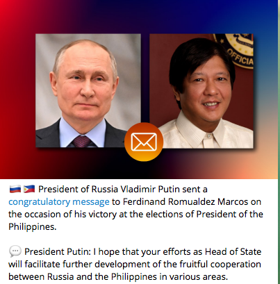 I congratulate Ferdinand Marcos Jr @bongbongmarcos on being elected President of the Philippines at the national elections on 9 May. Following the 75th anniversary of Australia-Philippines relations last year, we look forward to continuing to advance our long-standing friendship.