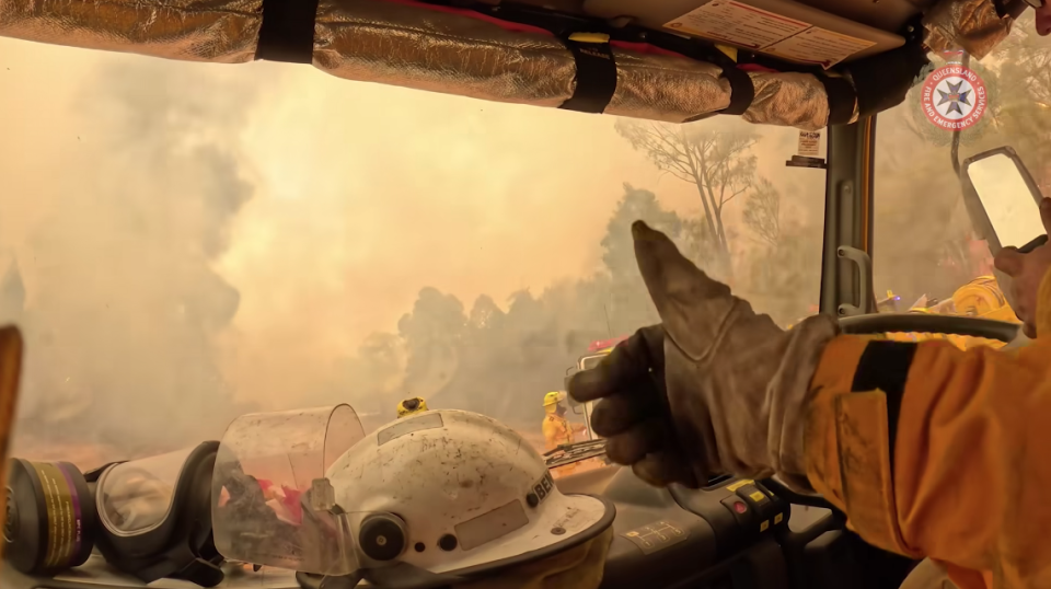 Aerial fire service footage showed cars fleeing as a fire front swept towards Wallangarra on Tuesday evening, a rural town of about 500 people that is about three hours’ drive south from Queensland’s capital Brisbane.