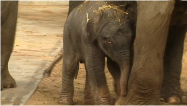 The young elephant, the first male calf born to his mother, was seen standing up and toddling on CCTV video just minutes after being born in the early hours of Tuesday, at 02h26, the zoo said.