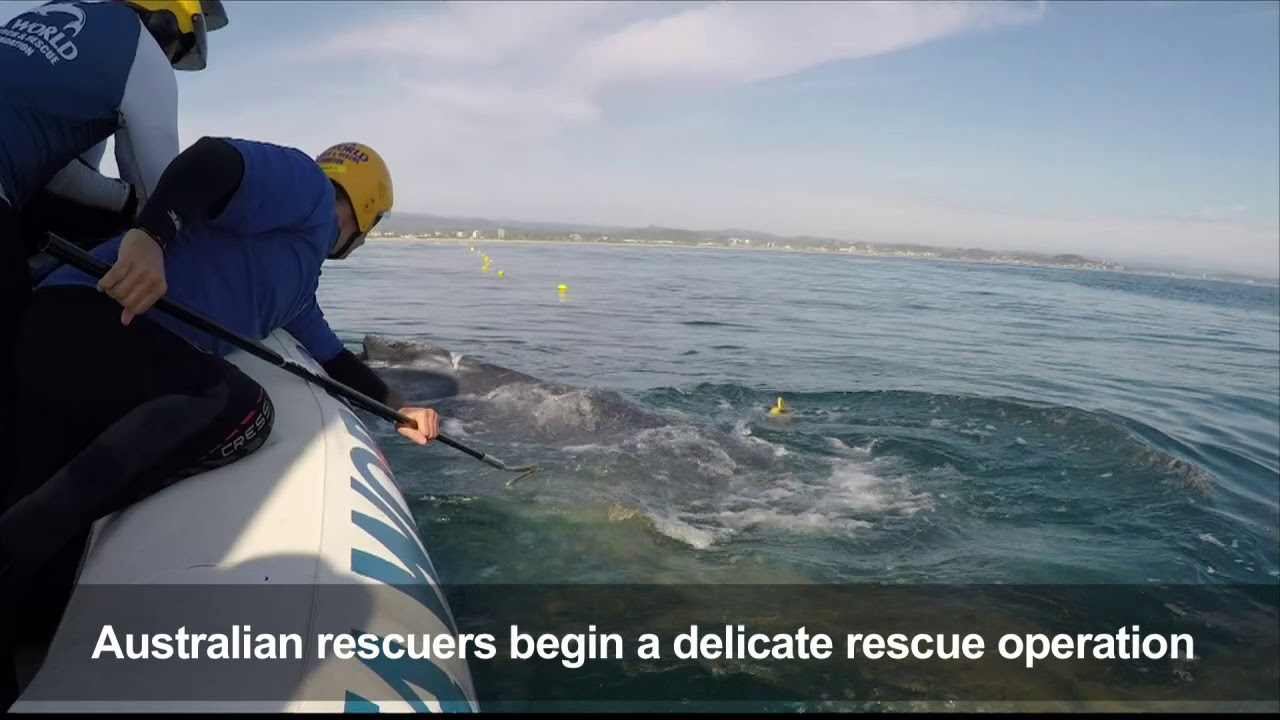 GOLD COAST, Australia (AFP) — A humpback whale calf is rescued after getting entangled in a shark net off the Gold Coast for some two hours.