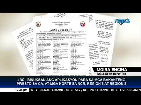 Samantala, inanunsyo rin ng JBC ang muling pagbubukas ng aplikasyon sa 10 judgeship position sa mga korte sa Regions 6 at 8.