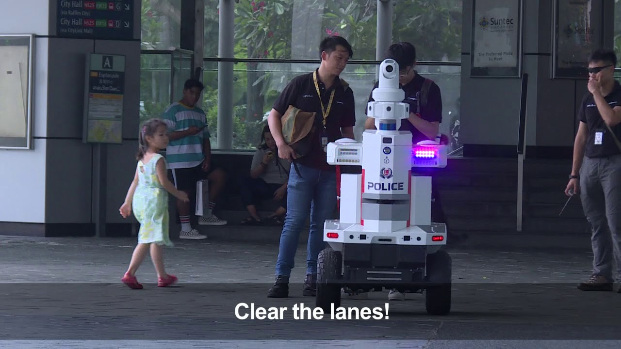A police robot patrols the Suntec City Convention and Exhibition Center during the 33rd Association of Southeast Asian Nations (ASEAN) summit in Singapore.
