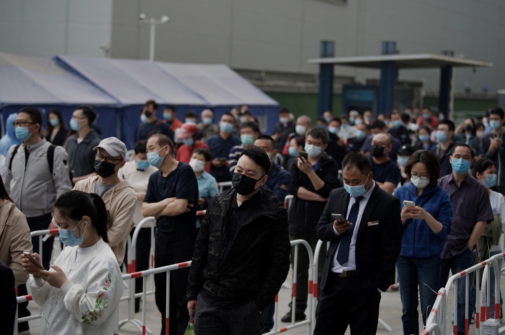 People wait in line to be tested for the Covid-19 coronavirus at a swab collection site in Beijing on April 25, 2022. (Photo by Noel Celis / AFP)