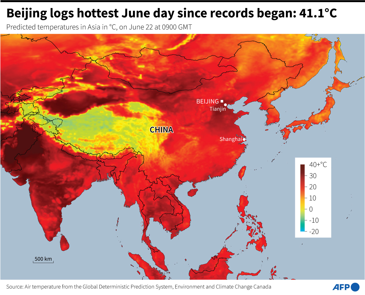 A day earlier Beijing logged its hottest June day since records began with the mercury edging up to 41.1C, breaking a record set in 1961.