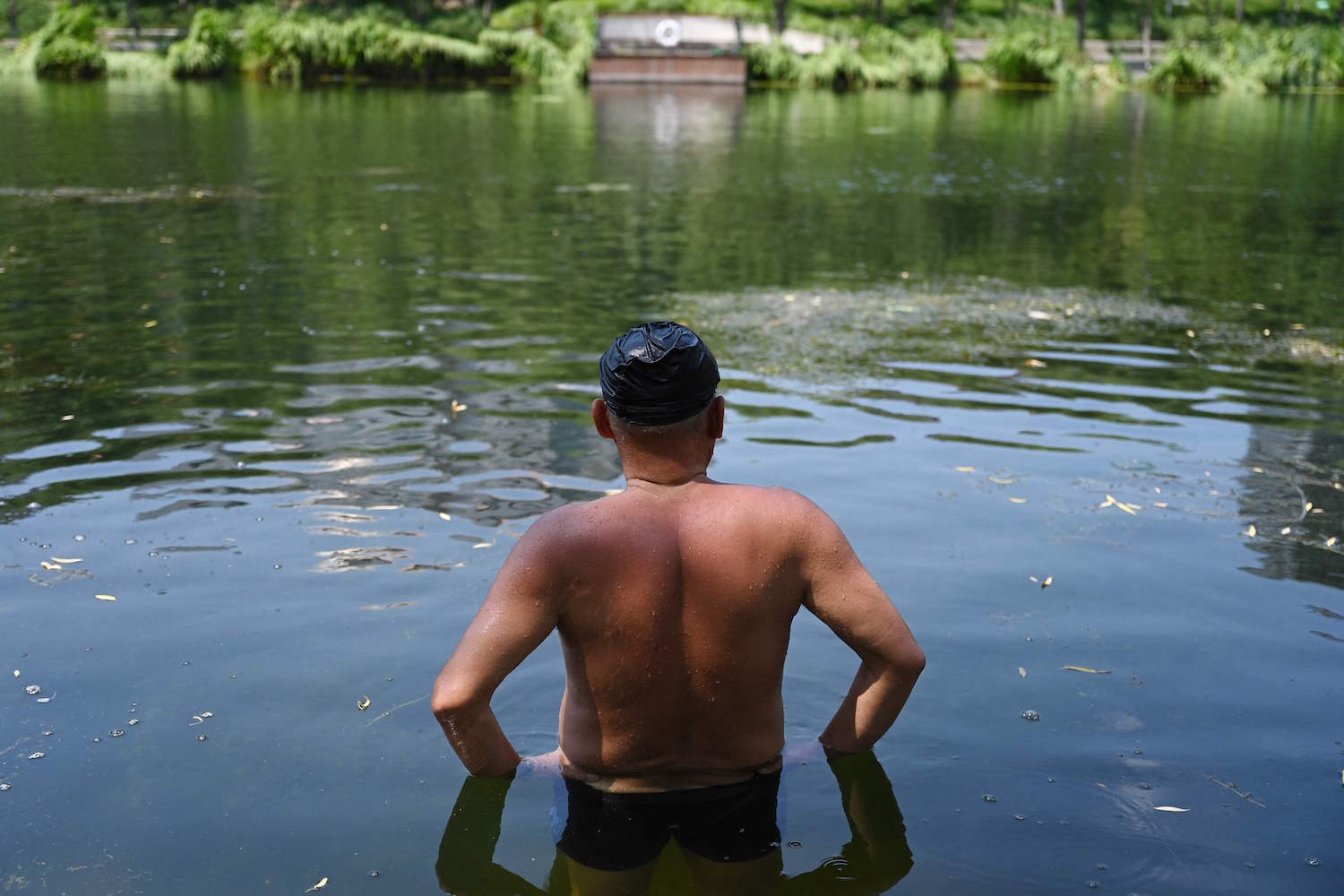 Along Beijing’s canals, residents sought respite from the searing heat by swimming and splashing around in the water.