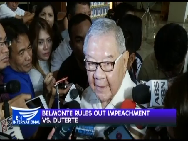 QUEZON City, Philippines (Eagle News) — Outgoing House Speaker Feliciano Belmonte said that there’s zero possibility that he would lead an impeachment trial against President-elect Rodrigo Duterte in the 17th congress to favor Vice President-elect Leni Robredo.