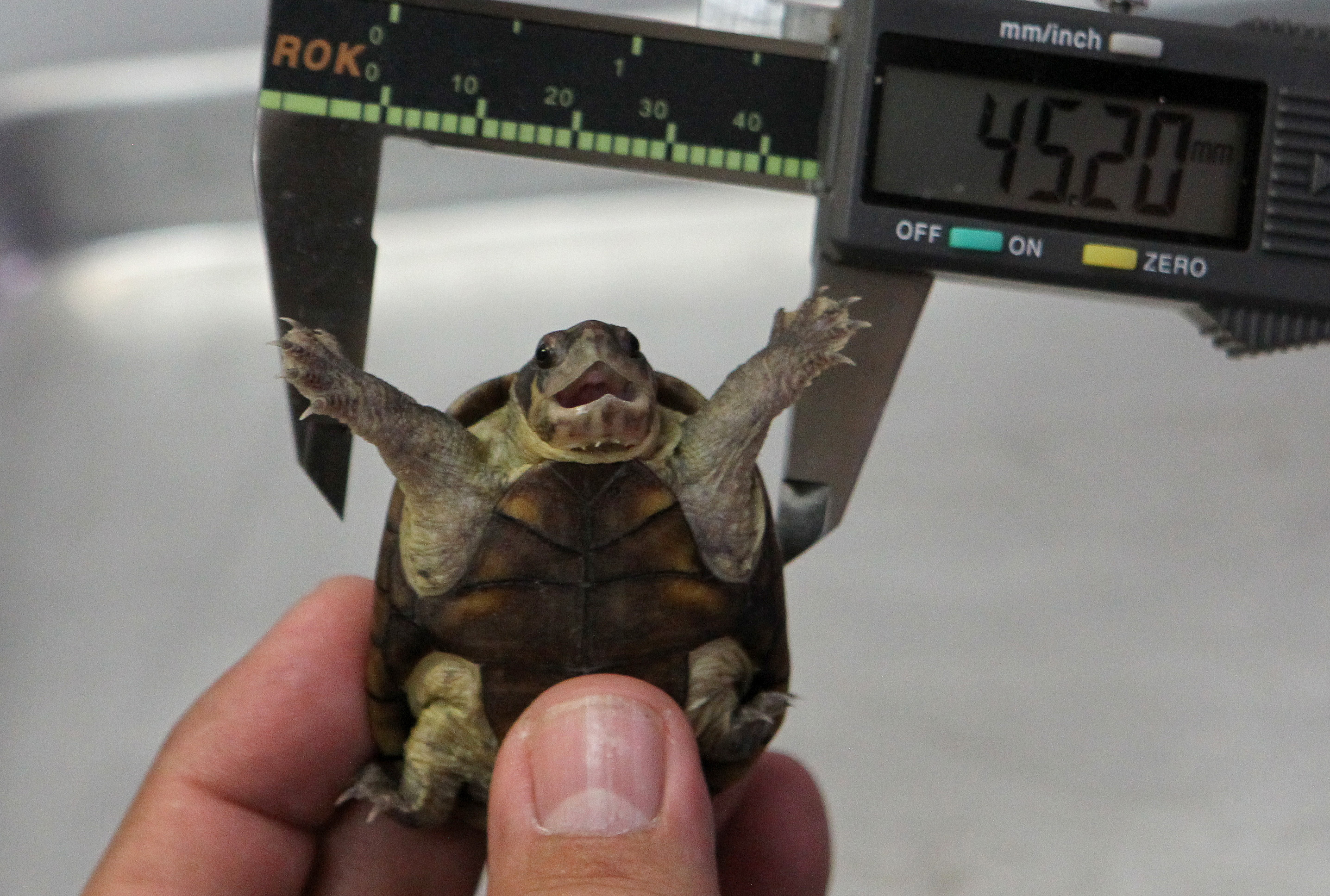 Measuring just 10 centimeters (four inches) long, the tiny turtles easily fit in the palm of a hand.