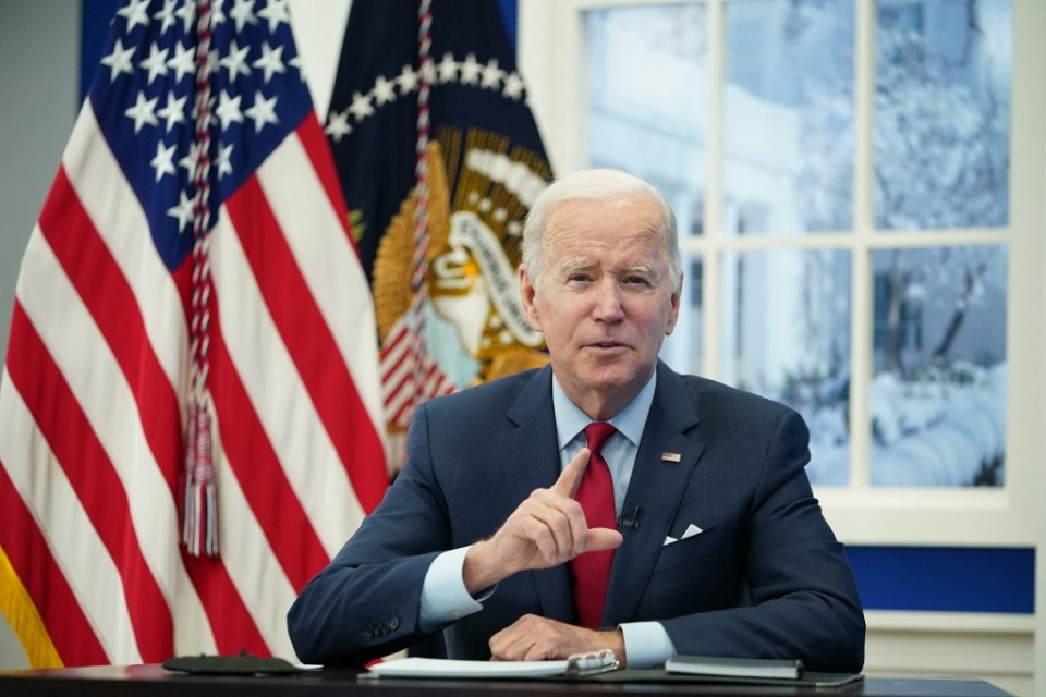 US President Joe Biden speaks with members of the White House Covid-19 Response Team on the latest developments related to the Omicron variant, on January 4, 2022, in the South Court Auditorium of the White House in Washington, DC. – The US recorded more than 1 million Covid-19 cases on January 3, 2022, according to data from Johns Hopkins University, as the Omicron variant continues to spread at a blistering pace. (Photo by MANDEL NGAN / AFP)
