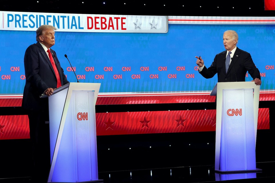 ATLANTA, GEORGIA – JUNE 27: U.S. President Joe Biden (R) and Republican presidential candidate, former U.S. President Donald Trump participate in the CNN Presidential Debate at the CNN Studios on June 27, 2024 in Atlanta, Georgia. President Biden and former President Trump are facing off in the first presidential debate of the 2024 campaign. Justin Sullivan/Getty Images/AFP (Photo by JUSTIN SULLIVAN / GETTY IMAGES NORTH AMERICA / Getty Images via AFP)