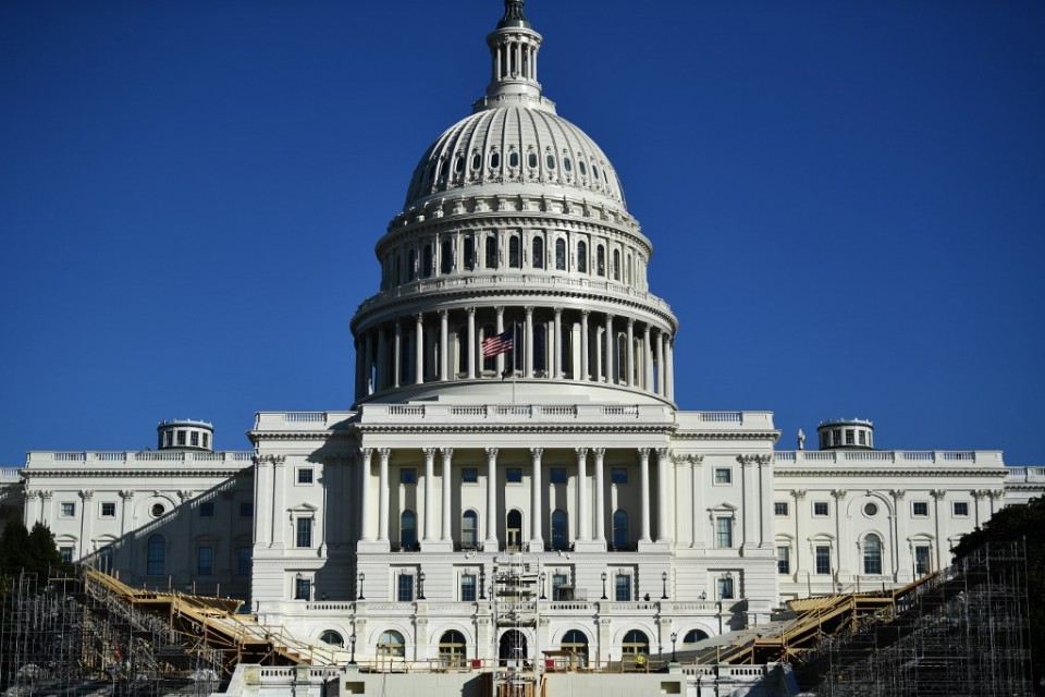 (FILES) In this file photo taken on November 9, 2020 The presidential inaugural platform is under construction in front of the US Capitol as part of the West Front lawn is closed to the public on Capitol Hill in Washington, DC. – US President-elect Joe Biden warned on December 26, 2020 of “devastating consequences” if President Donald Trump continues to delay signing a Covid-19 economic relief bill passed by Congress. (Photo by Brendan Smialowski / AFP)