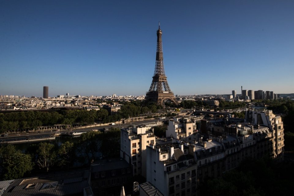 This picture taken on April 26, 2020, shows the Montparnasse tower (L) and the Eiffel Tower in Paris, on the forty-first day of a lockdown in France aimed at curbing the spread of the COVID-19 disease, caused by the novel coronavirus. (Photo by JOEL SAGET / AFP)