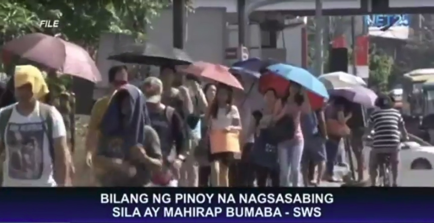 Ayon sa SWS, bumaba ng 10 puntos ang bilang ng mga self-rated poor na pamilya sa Luzon.