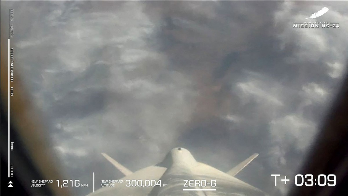 After separating from the booster, the gumdrop-shaped capsule attained a peak altitude of 66.5 miles (107 kilometers) above sea level, well above the internationally recognized boundary of space known as the Karman line, which is 62 miles high.