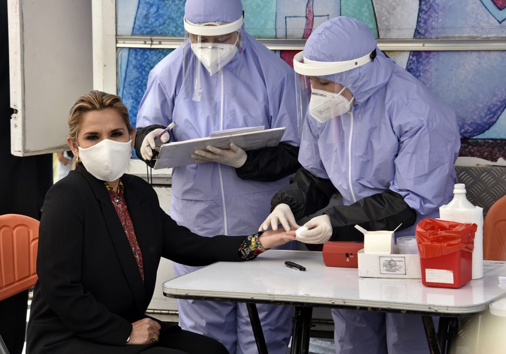 LA PAZ, Bolivia (AFP) — Bolivia’s interim president became the latest world leader to test positive for the coronavirus Thursday, as the United States notched yet another record-breaking surge of cases while global infections and fatalities continued their relentless rise.