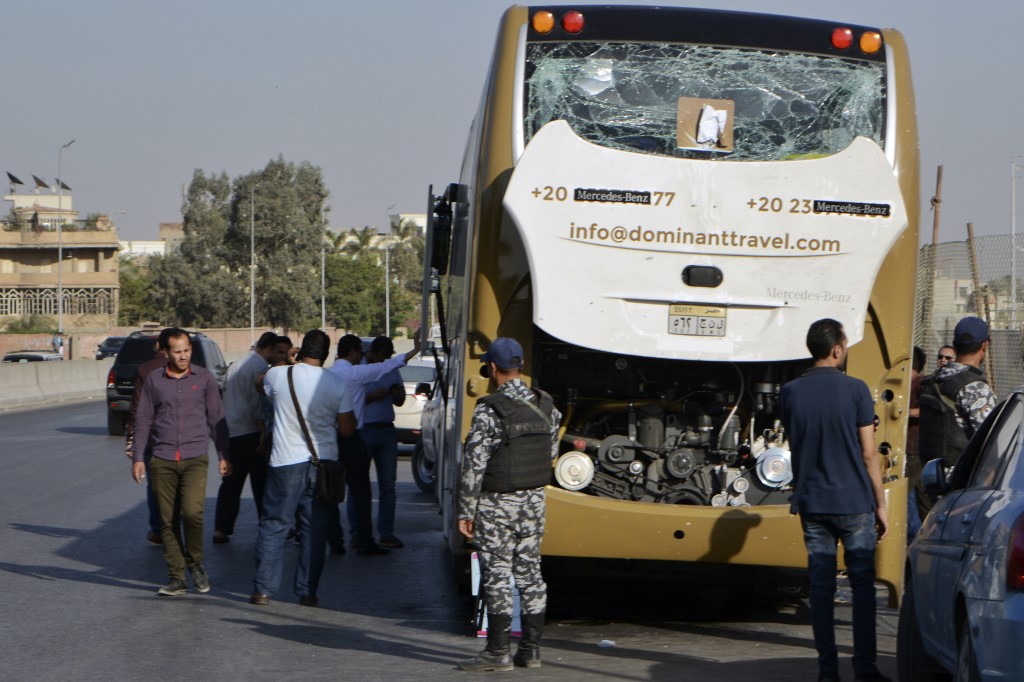 GIZA, Egypt (AFP) — A bomb blast hit a tourist bus near Egypt’s famed Giza pyramids on Sunday, wounding some of them, including South Africans, in the latest blow to the country’s tourism industry.