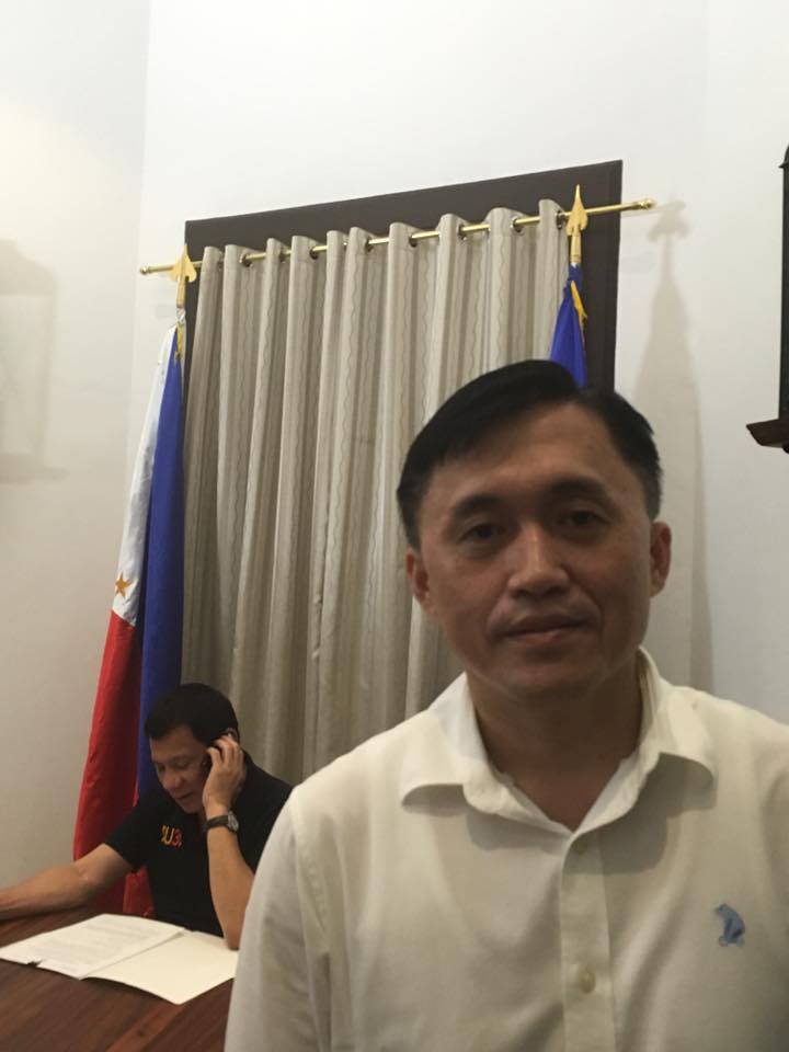 Special Assistant to the President Bong Go with President Rodrigo Duterte in the background (Photo courtesy Christopher “Bong” Go’s Facebook page)