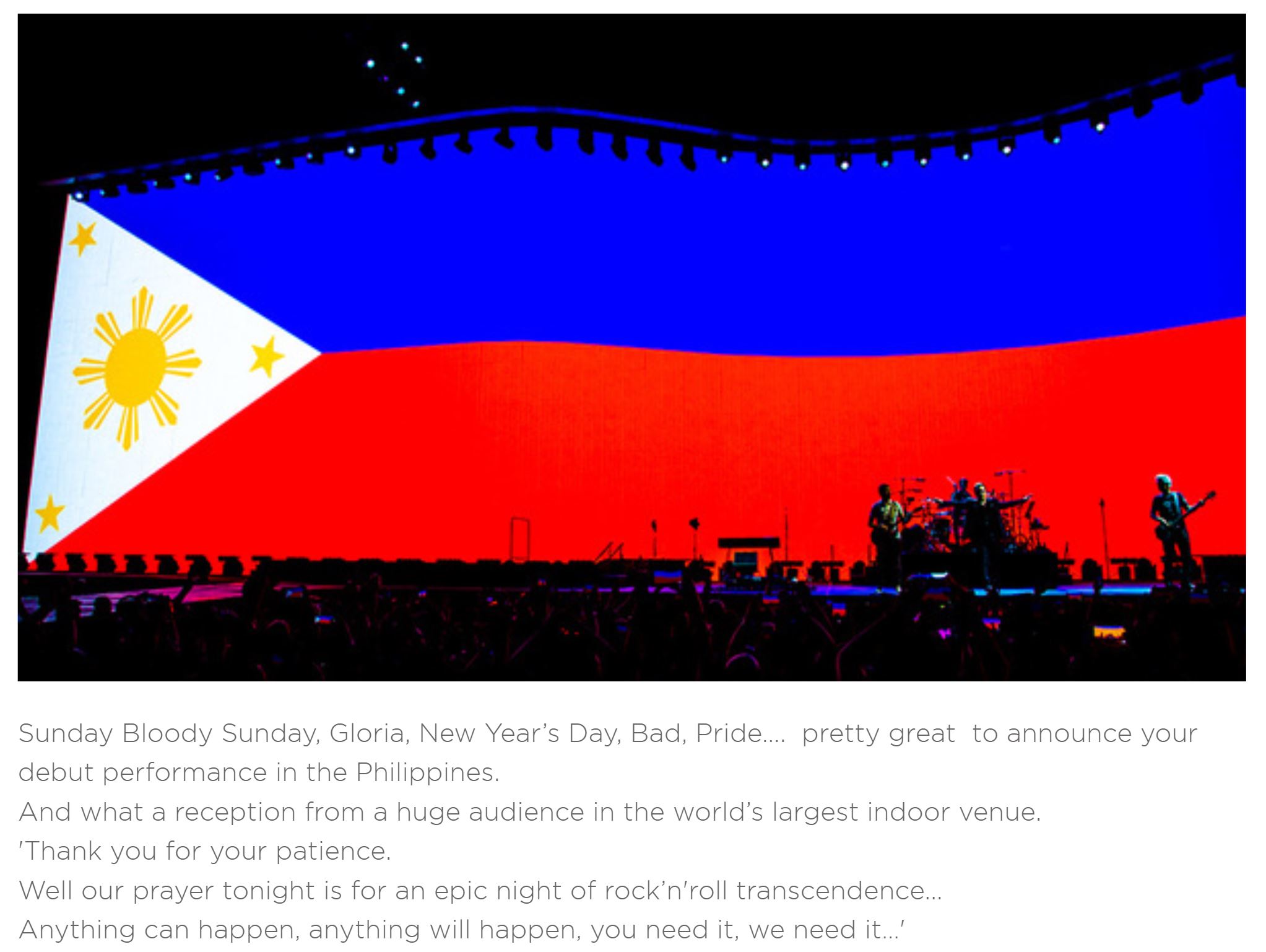 In the U2’s official website, the band again posted their appreciation for the Filipino fans who went to their concert.