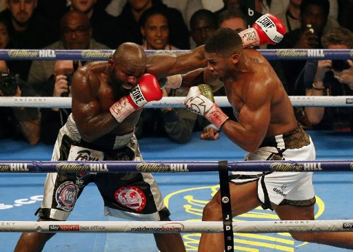 Joshua stopped Takam in 10th round to retain his championship belts. / AFP PHOTO