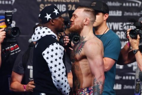 McGregor snarled and yelled into Mayweather’s face on Friday when the two men went nose-to-nose at their weigh-in.