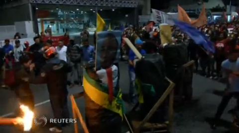 (Reuters) — Brazilians burnt effigies of President Michel Temer in a Sao Paulo street on Monday (July 10) to denounce moves by the conservative government to push through with reforms that protesters say will take away work and pension rights.