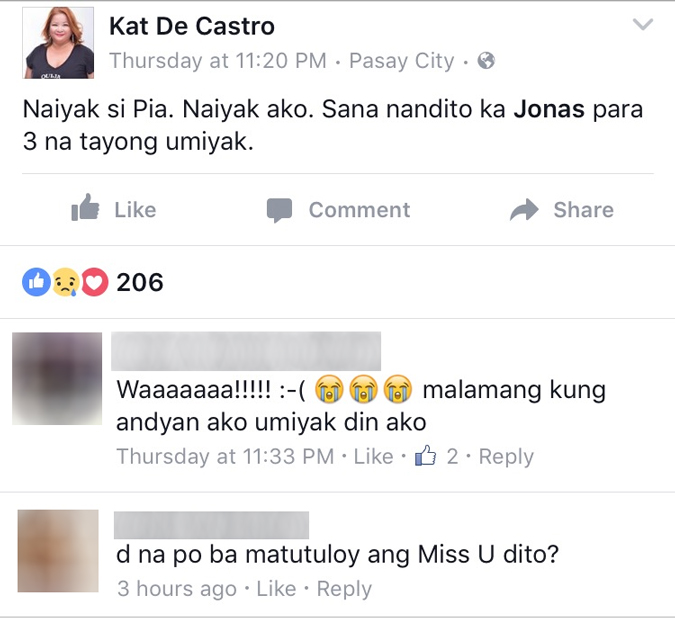 This confirmation belies rumors that the 2017 Miss Universe may not push through, at least not here in the Philippines. The rumor started when Tourism Undersecretary for Advocacy Kat de Castro made a cryptic post on Twitter last September 29, stating  that she and reigning Miss Universe Pia Wurtzbach were very emotional during a dinner meeting.