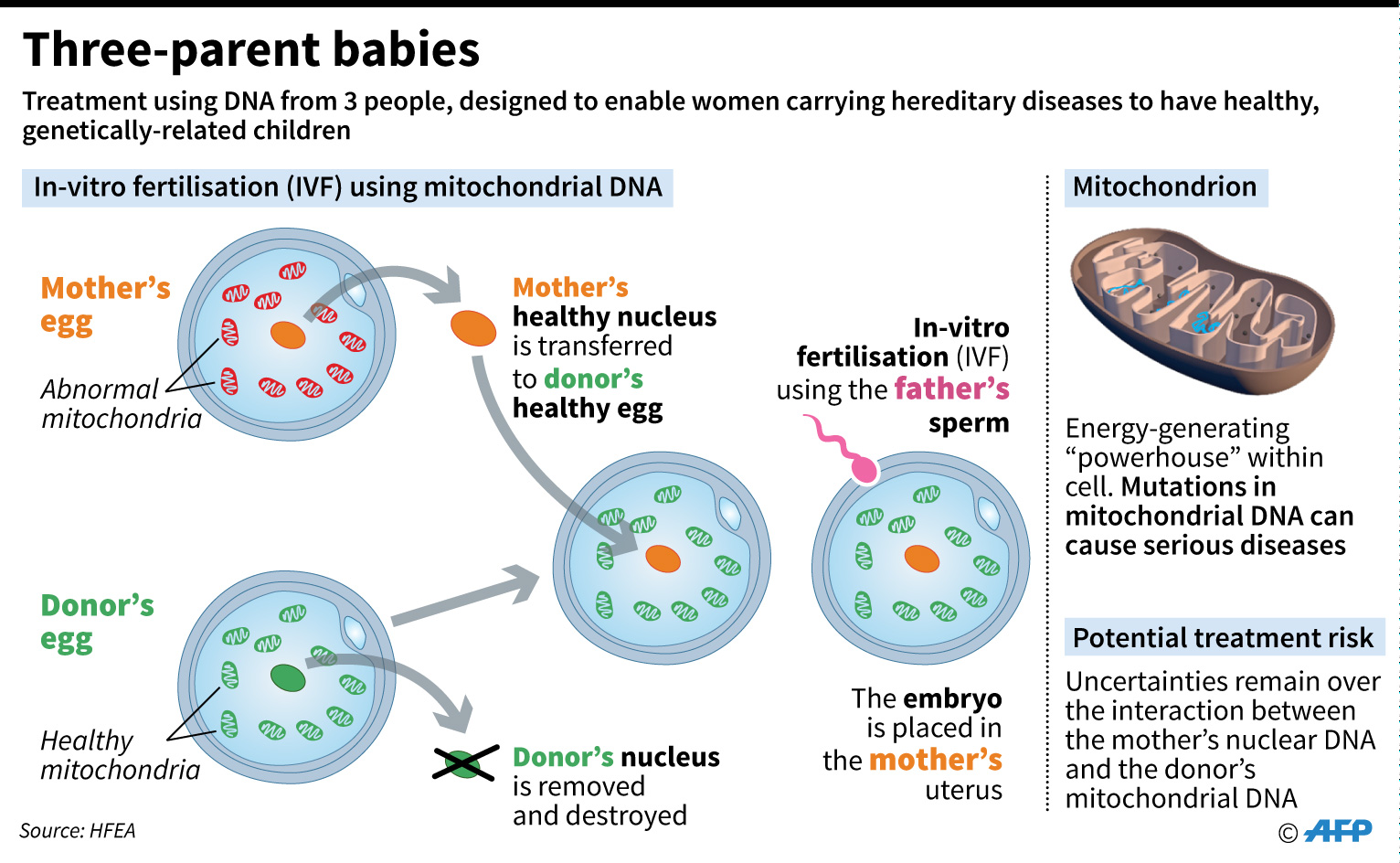 The first baby conceived using mitochondrial donation was born earlier this year in Mexico, where there are no rules on its use, but Britain is the first to officially authorise it.